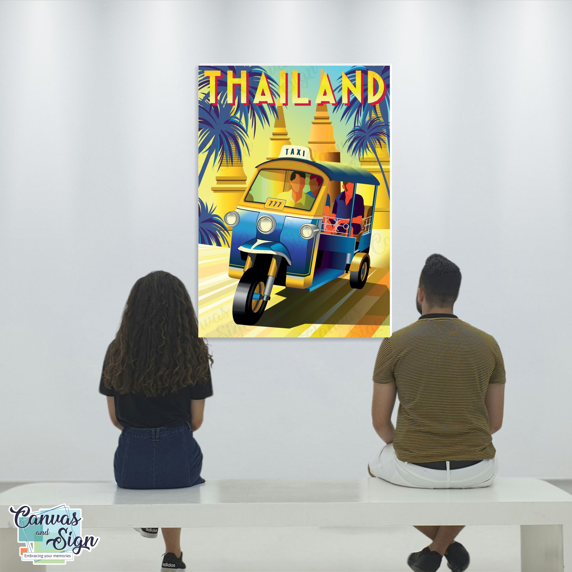 We print on 280gsm poly cotton canvas material and offer it in matt or satin gloss.