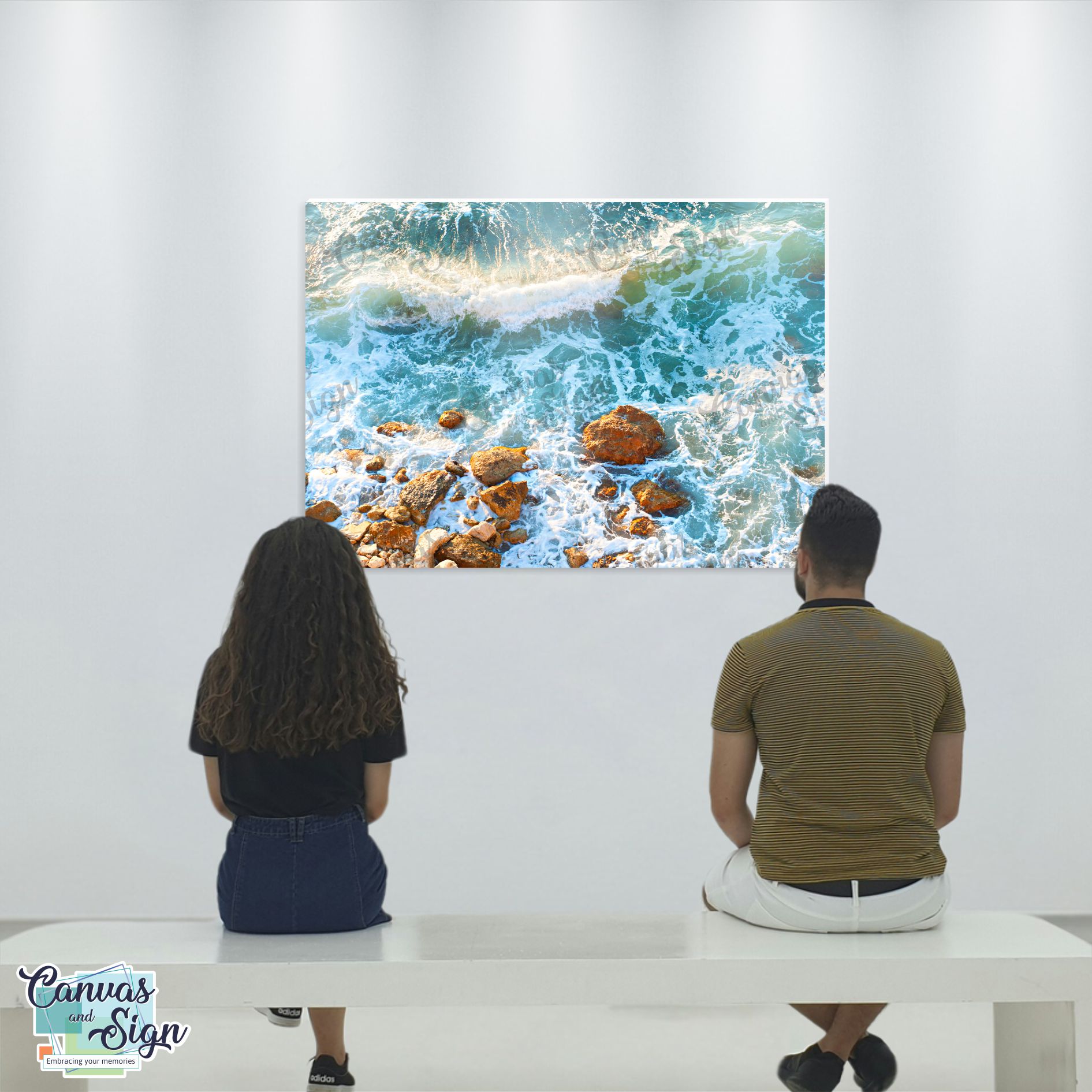 We print on 280gsm poly cotton canvas material and offer it in matt or satin gloss.