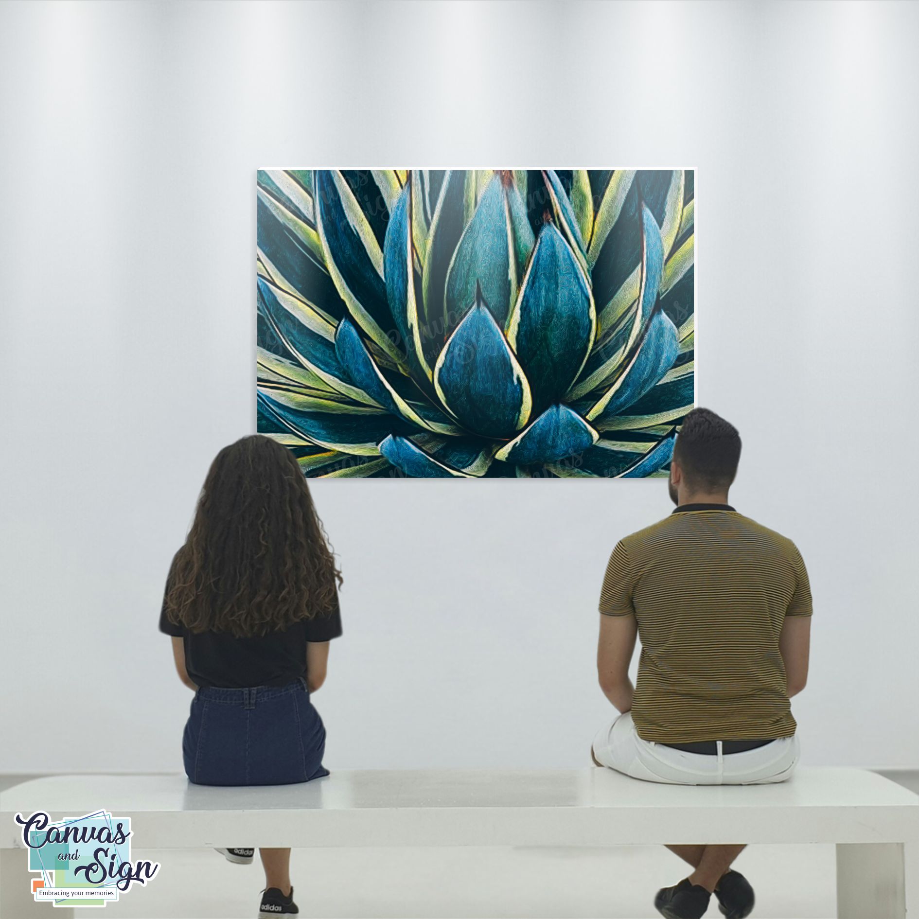 We print on 280gsm poly cotton canvas material and offer it in matt or satin gloss.
