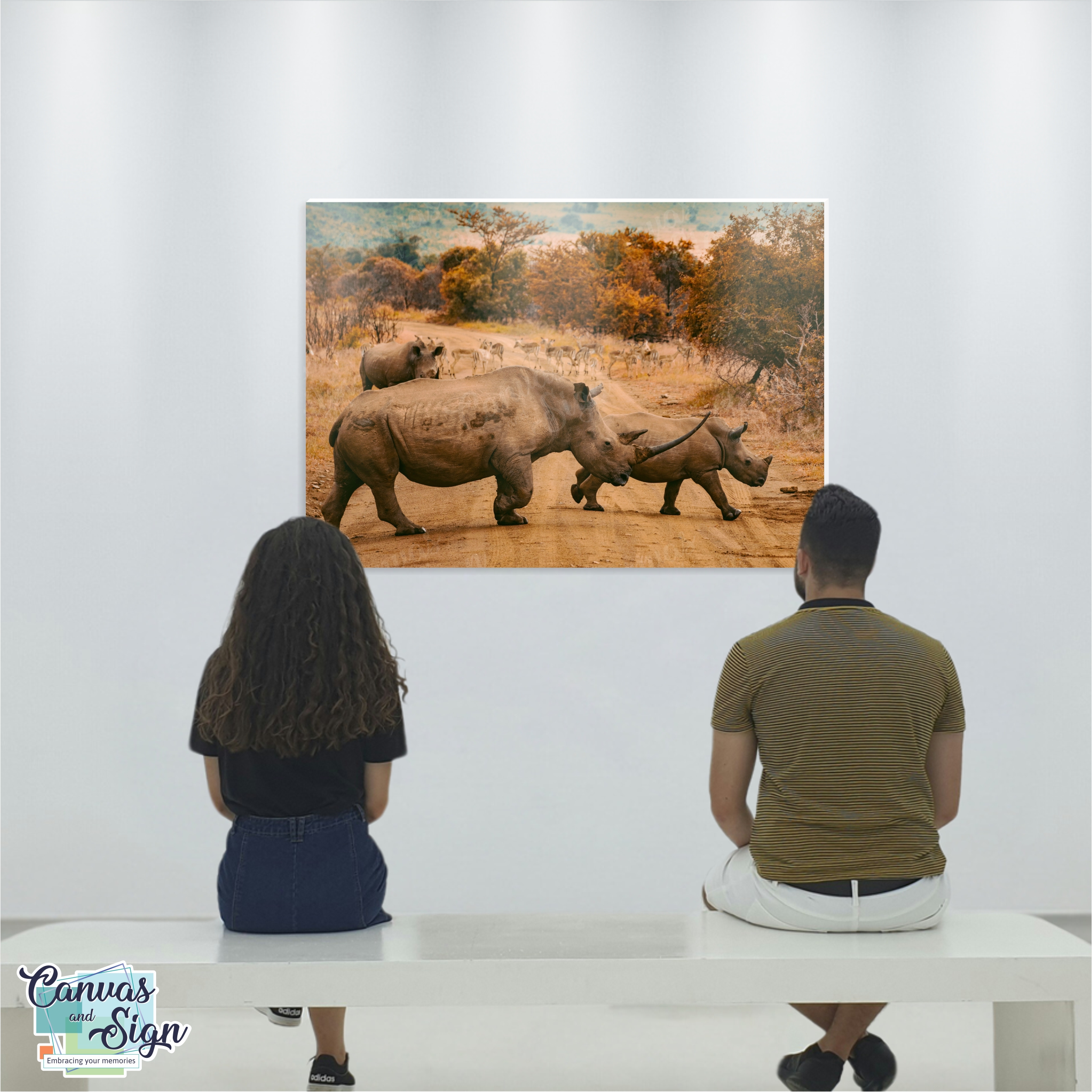 We print on 280gsm poly cotton canvas material and offer it in matt or satin gloss.