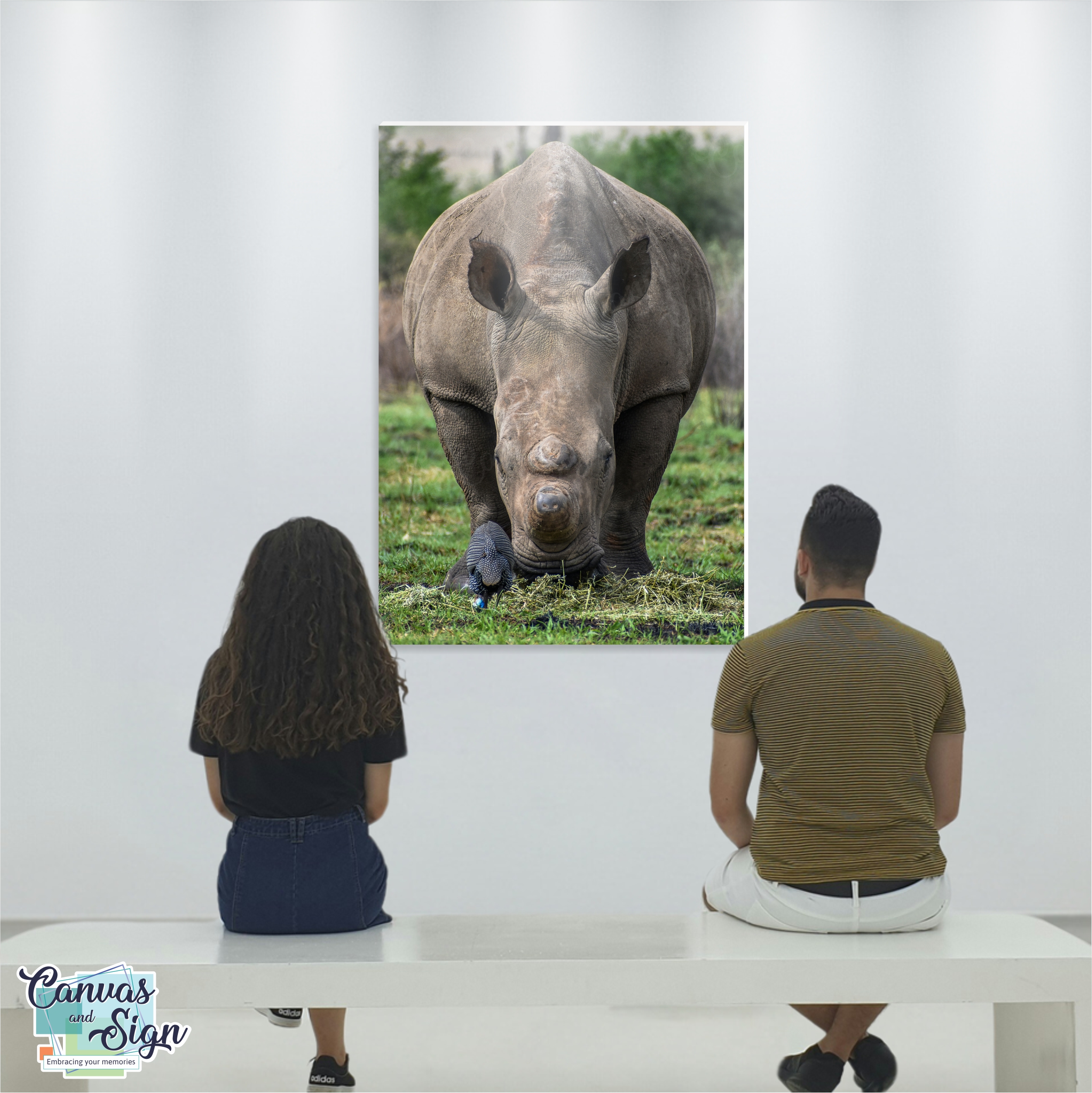 We print on 280gsm poly cotton canvas material and offer it in matt or satin gloss.