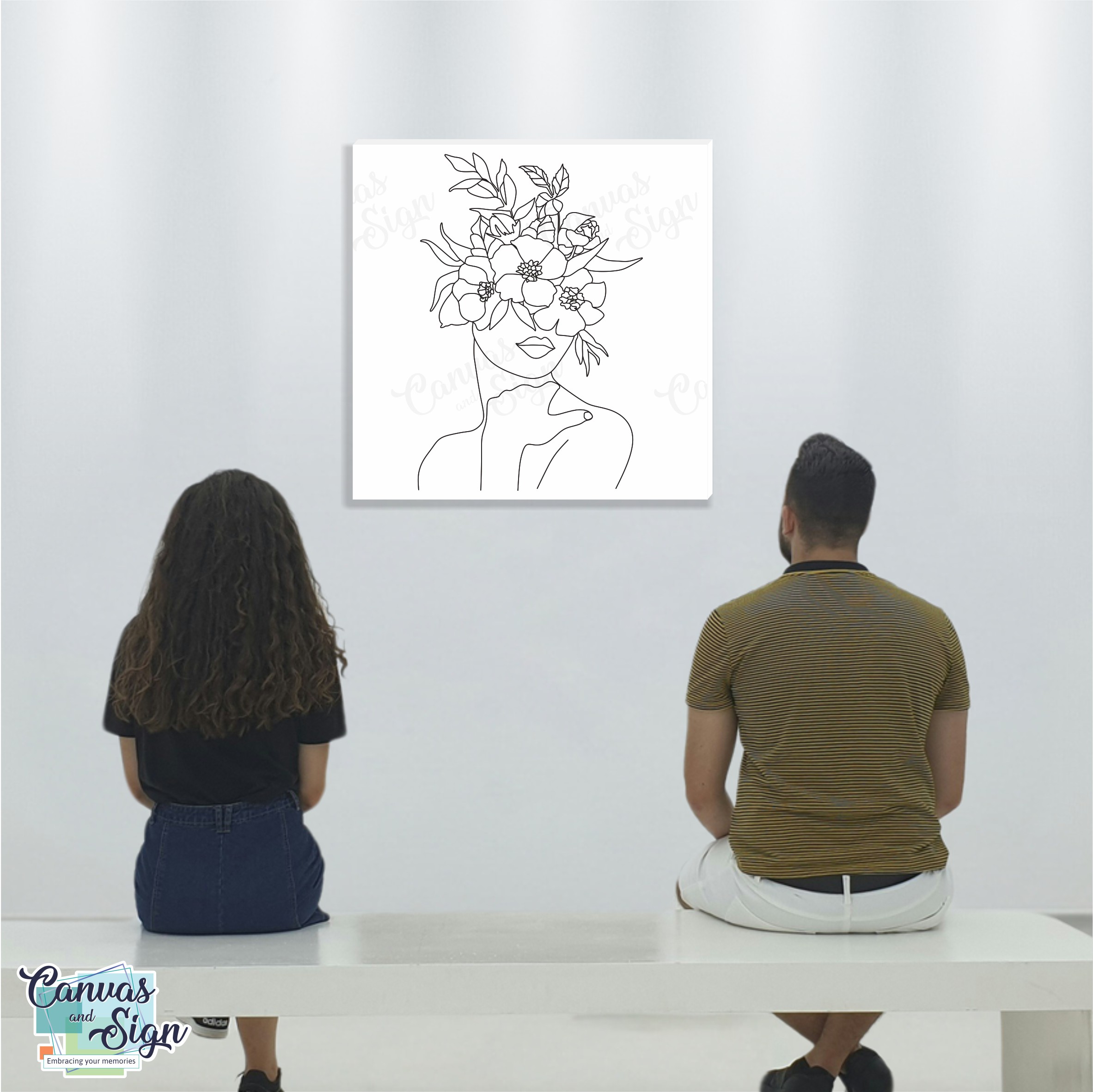 Feature Canvas - Line Art Flower Lady B