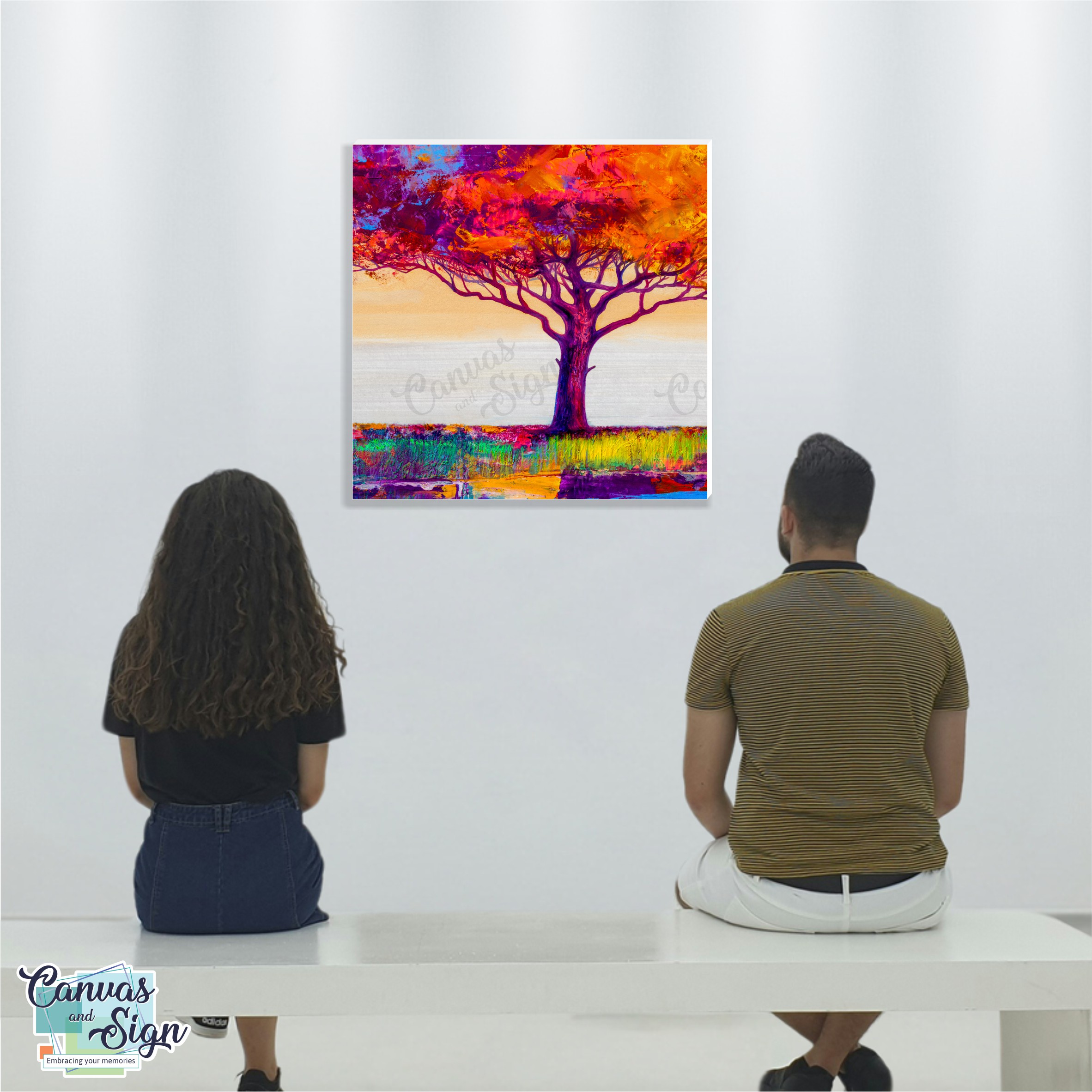 We print on 280gsm poly cotton canvas material and offer it in matt or satin gloss.