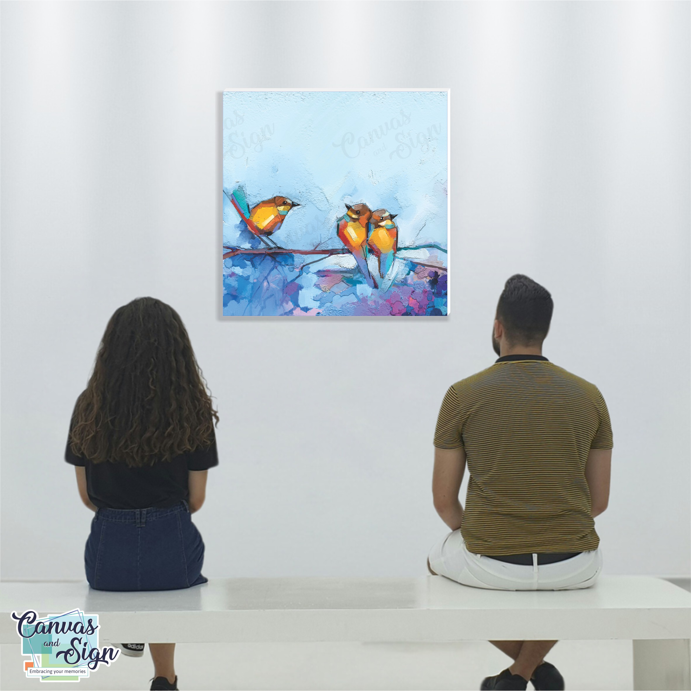 We print on 310gsm poly cotton canvas material and offer it in matt or satin gloss.