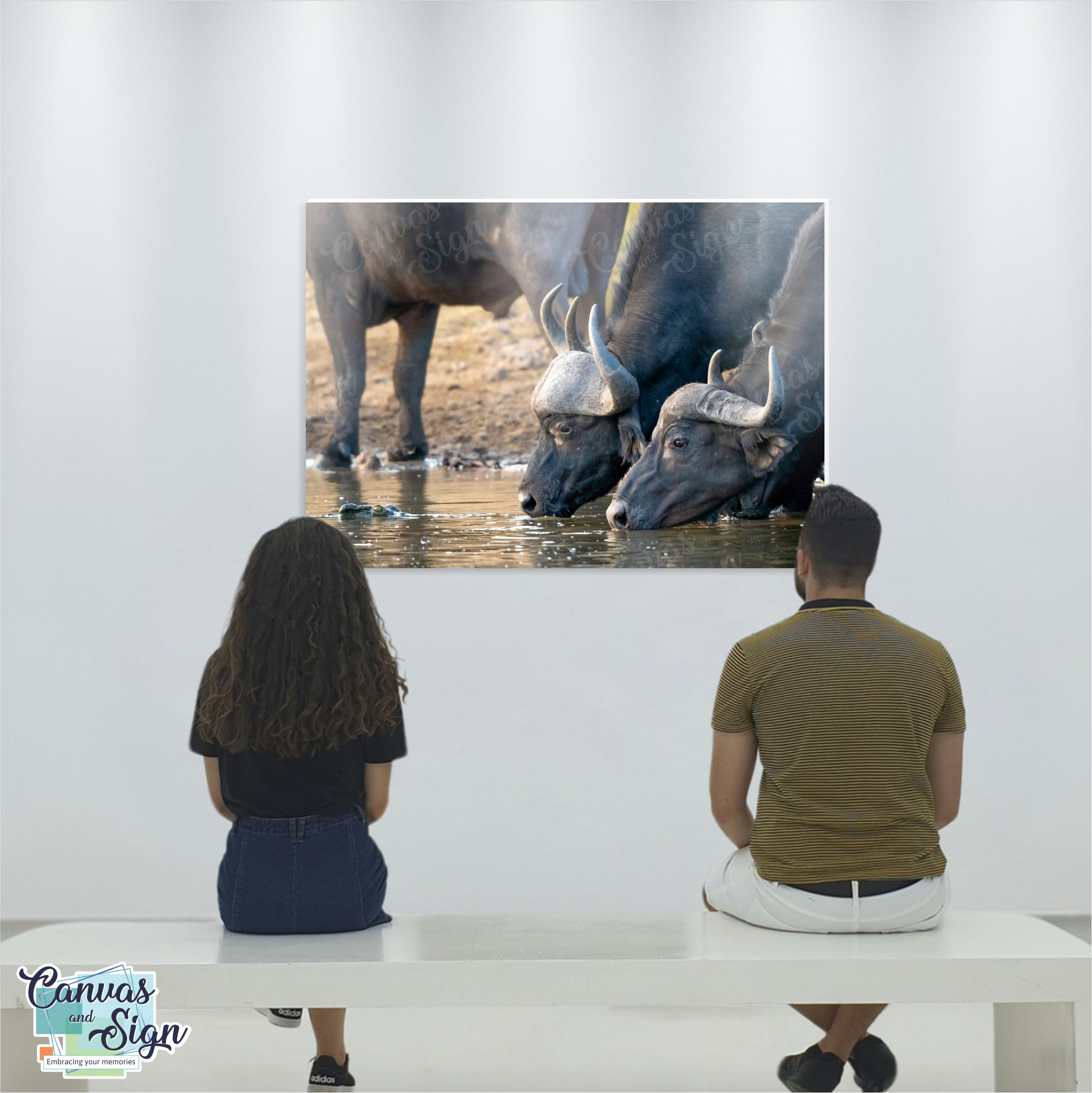 We print on 280gsm poly cotton canvas material and offer it in matt or satin gloss.