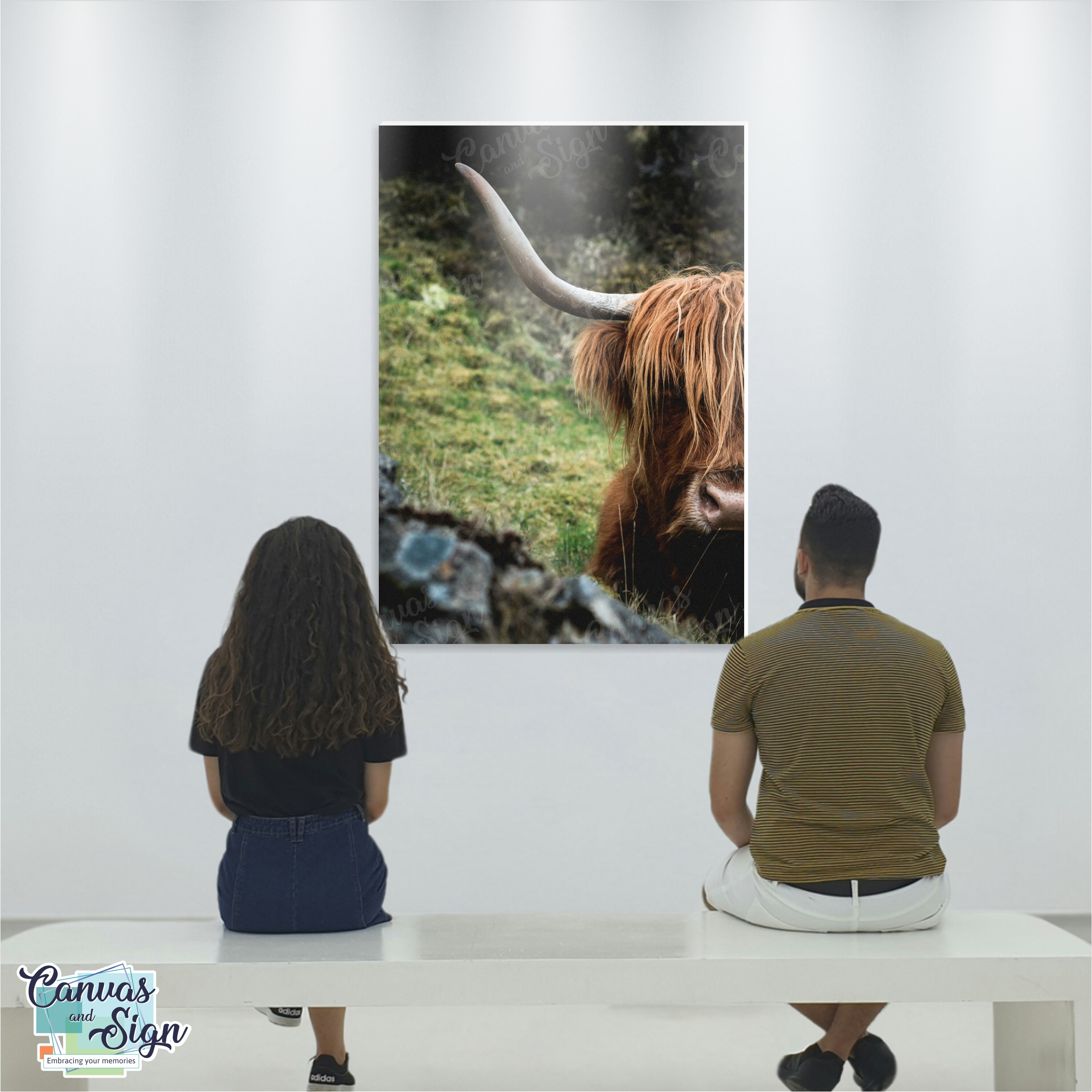 We print on 280gsm poly cotton canvas material and offer it in matt or satin gloss.