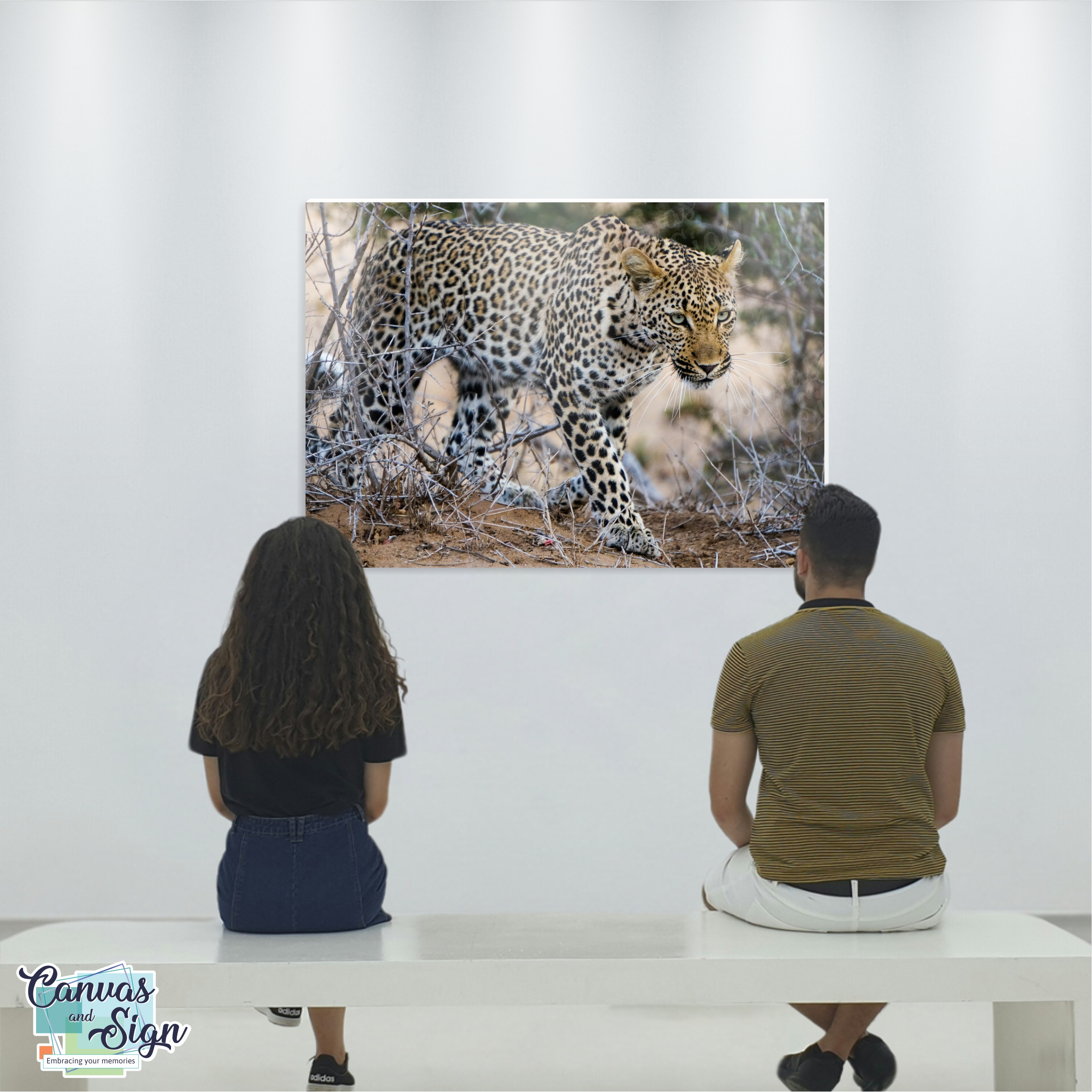 We print on 280gsm poly cotton canvas material and offer it in matt or satin gloss.