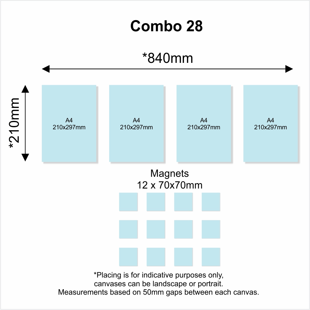 (4xA4) Canvases + (12x70x70mm) Fridge Magnets