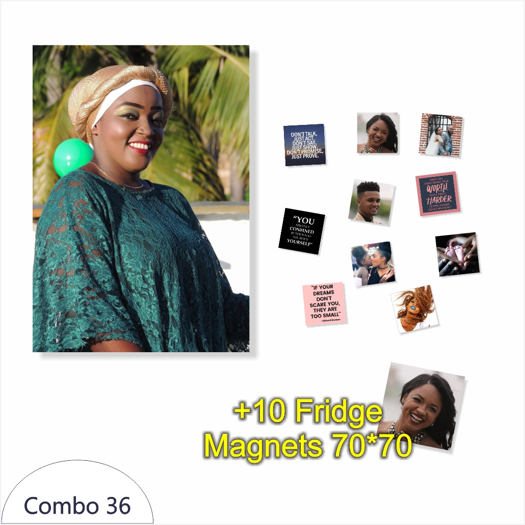 (1 x A3 canvas plus 10 x 70x70mm fridge Magnets)