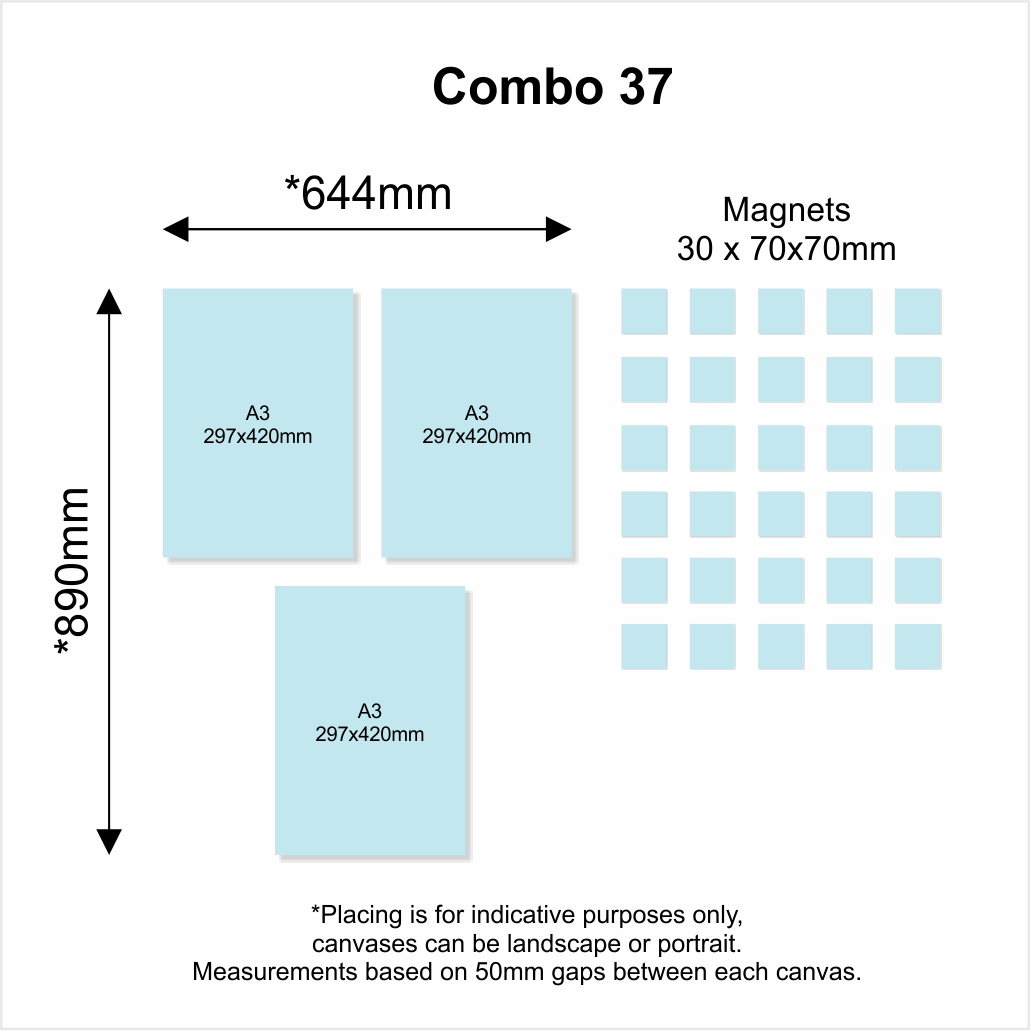 (3 x A3 canvas plus 30 x 70x70mm fridge magnets)