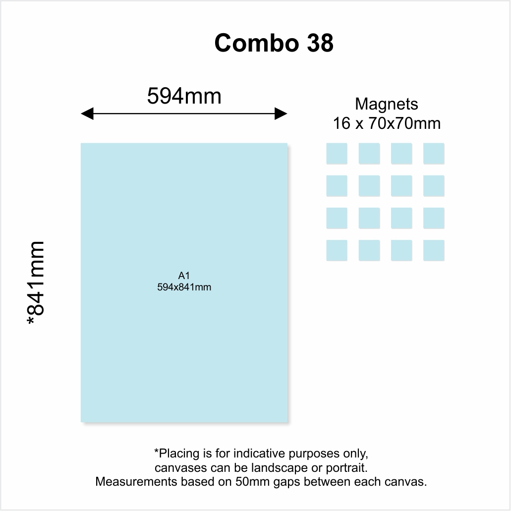 (1 x A1 canvas plus 16 x 70x70mm fridge magnets)