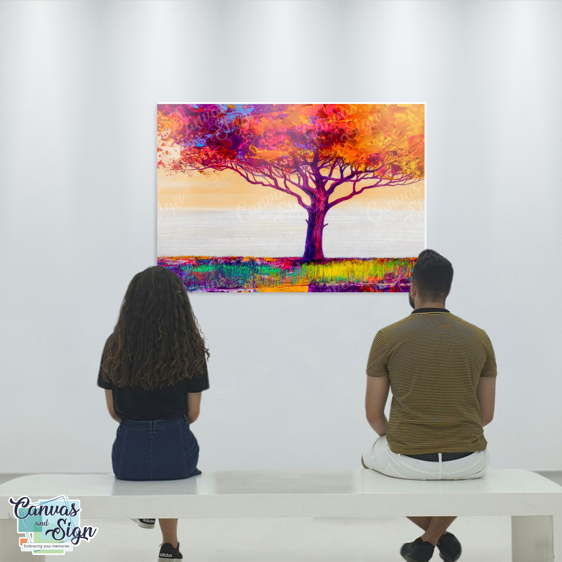 We print on 280gsm poly cotton canvas material and offer it in matt or satin gloss.